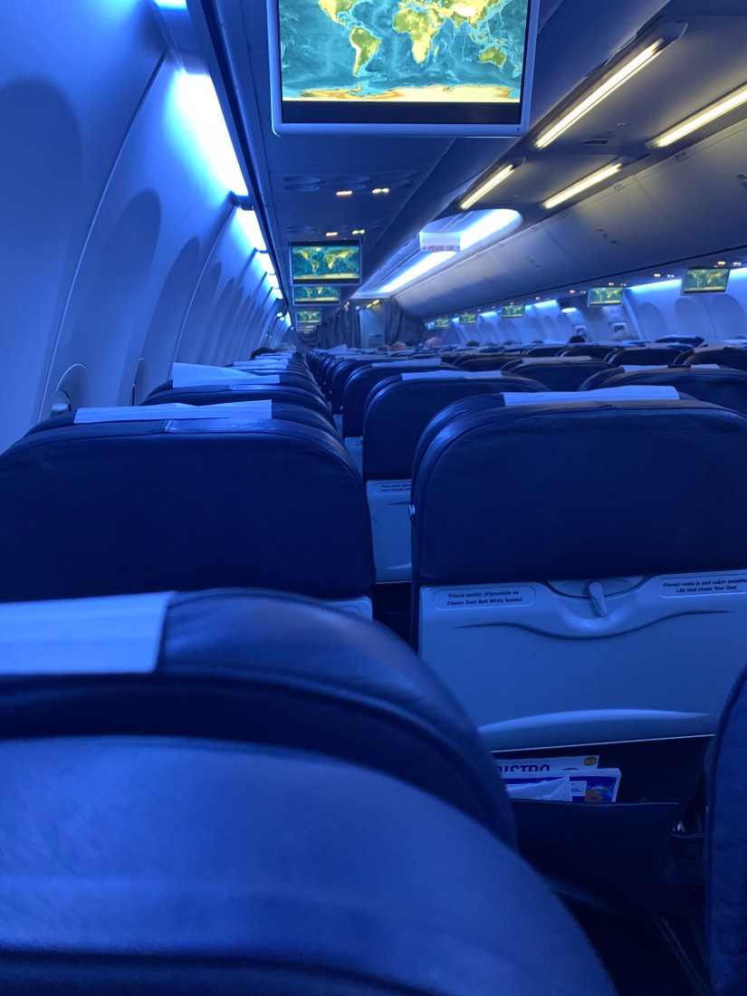 This morning we said “Na shledanou” (goodbye) to Praha. We barely got a few hours sleep before we had to wake up and get to the airport for our 5AM flight to Corfu. We arranged for someone to pick us up and turns out he was quite the driver! We flew through the street of Prague and made it to the airport in record time. The trip is normally closer to an hour and we made it in about 25 minutes (the empty streets helped)! Unfortunately while we were at the airport plenty early, our flight was delayed about an hour. Once we boarded we found someone sitting in our seat and kindly let him know. Well, little did we know that the plane would be practically empty! It was a large plane with 3 seats on either side, a first class section, and probably close to 45 rows. Apparently this isn’t the most popular time of the year to fly from Prague to Corfu!