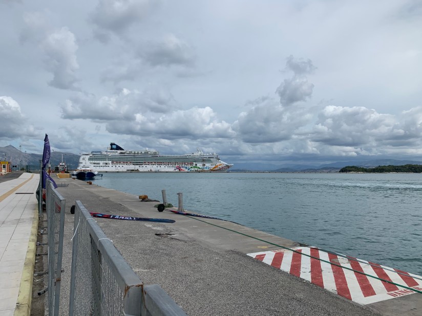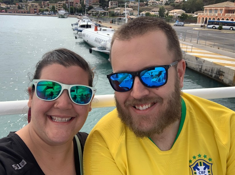 After lunch we put on our packs and made our way by foot to the ferry terminal. It was an easy walk, a bit hot but overall the weather was pretty moderate. We walked all the way through the port to find the international ferry terminal. Once we arrived we spotted a sign by pure luck indicating where we should check in. We had bought our tickets just that morning and oddly the confirmation email did not include any kind of attachment. It simply said tickets could not be obtained in advance and that we needed to see the check in. The very kind woman told us not to worry, just show the confirmation at the door and that checkin would start in 20 minutes. Mind you, we were there an hour in advance of the ferry departure time. She then proceeded to tell pretty much everyone else who came to checkin that it would be 20 minutes. Eventually, the time came for us to pass through passport control and wait to board the ferry. As we tried to go through the gentleman checking tickets looked very confused at what we showed him and asked us to wait. After everyone else was passed through the door he came back to us and again tried to take a look at the confirmation email we had. We told him that the woman at the counter told us it would be no problem and that we should just show him this same email. He finally gave up on trying to find her, asked us if “the short woman” told us it was ok to which we said yes, and then he let us through. We then showed our passports to the border control woman who also had a very confused look. She asked us from where we came and we told her Prague. To that she said “but you don’t have a passport stamp from entering Greece”. This certainly had us a bit worried then she asked to see our plane tickets. Thankfully I had them electronically and upon reviewing it and realizing we literally just arrived she also let us through. The ferry ride was a bit of a mess and certainly not kept to a strict schedule. We departed about 45 minutes late but overall the ride was nice and only about 90 minutes.
